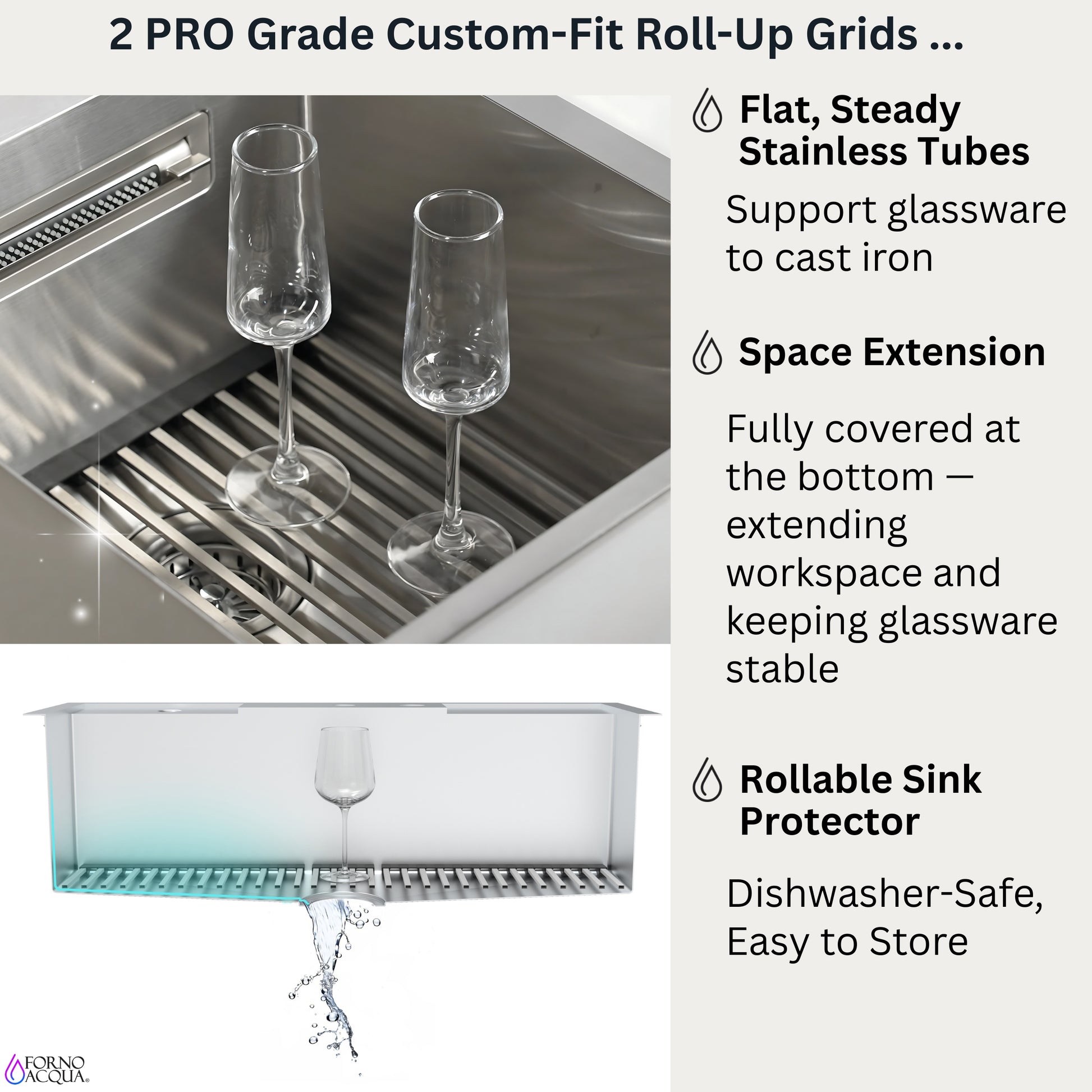 * 3 Flat Stainless Steel Roll-Up Grids Protect Sink Bottom, Extend Workspace & Keep Glassware Stable, Dishwasher-Safe