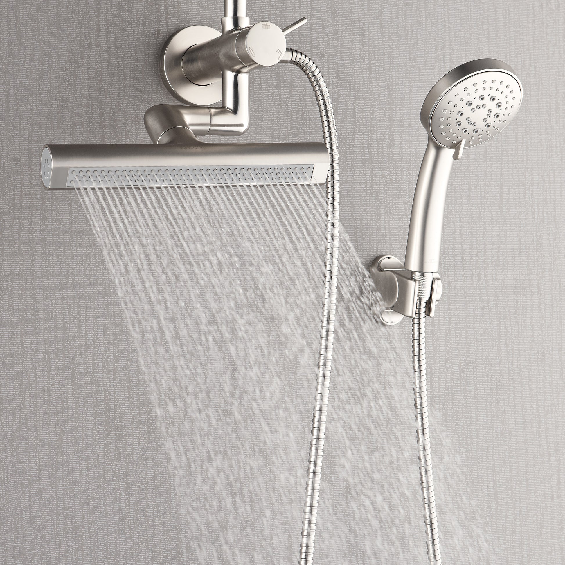 Forno Acqua AcquaFALL Mini Shower Head, Brushed Nickel Finish, Overhead Rainfall Shower, 7 Way Diverter, Handheld Shower Head, Body Jets, 2.5 GPM Flow Rate