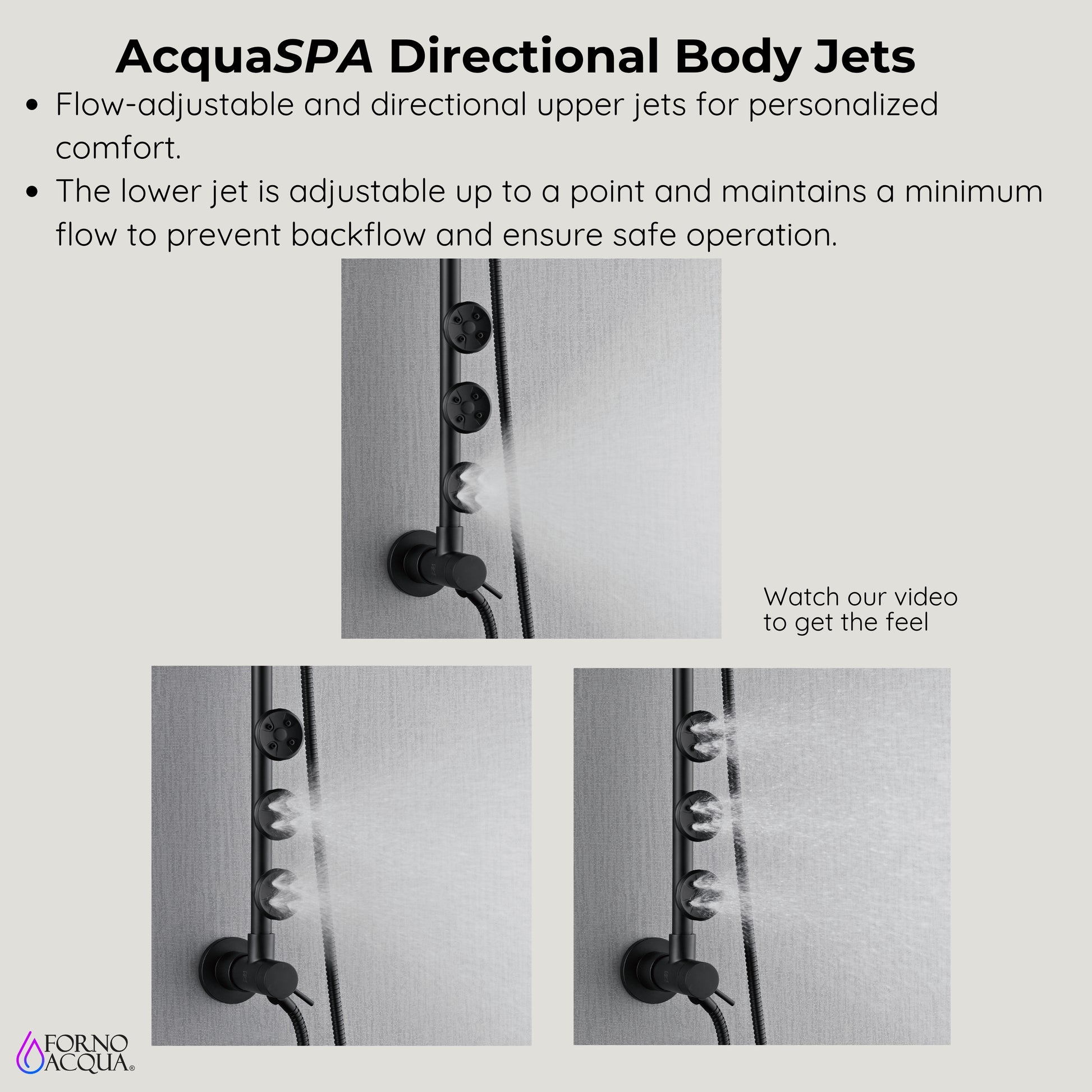 Forno Acqua AcquaSPA Retrofit Shower, Overhead Rainfall, 8 Inch Shower Head, Handheld Shower Head, Body Jets, 6 Way Diverter, Matte Black Finish, 1.8 GPM Flow Rate