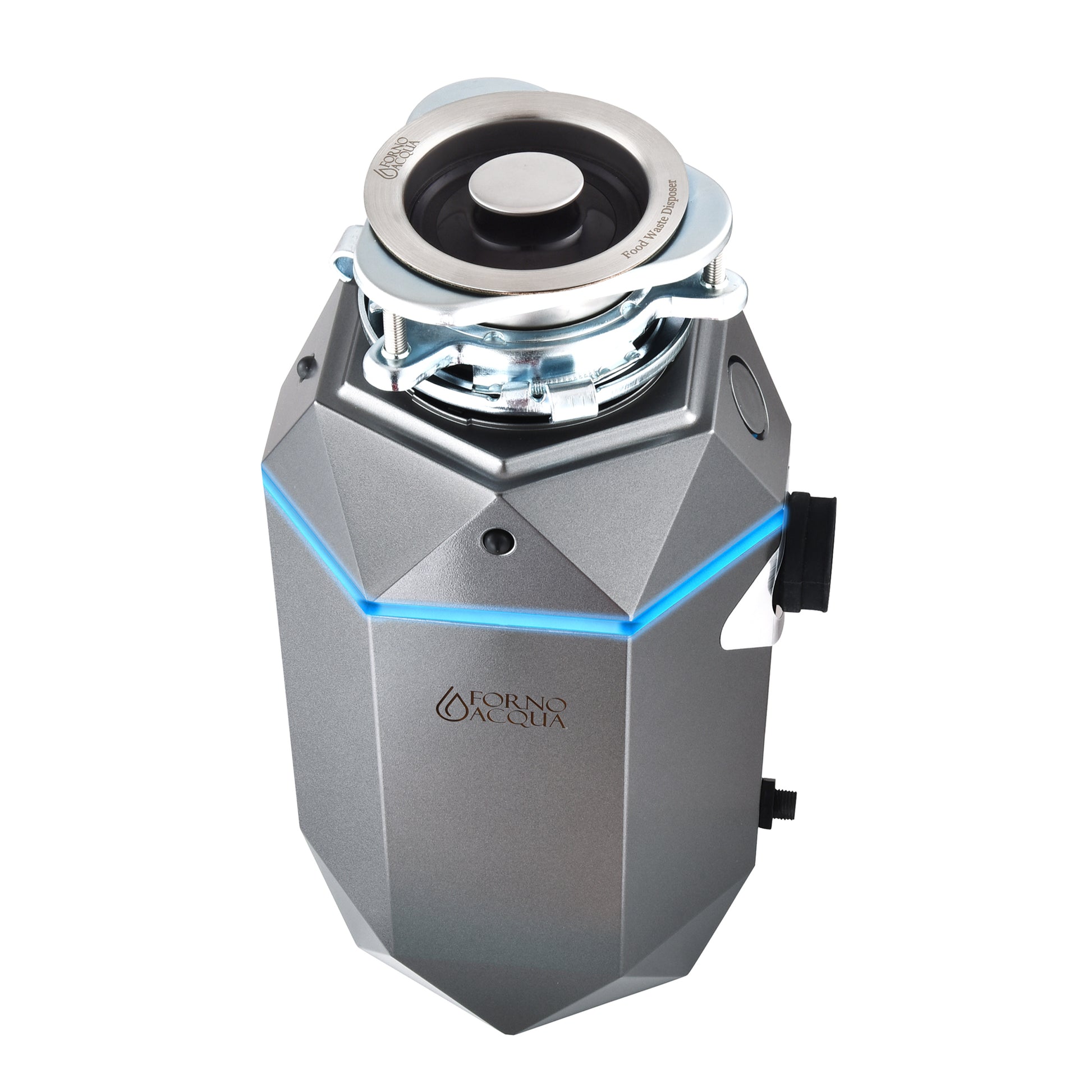 Upgrade your kitchen with the FORNO ACQUA Super Quiet Waste Disposer, a perfect blend of power, elegance, and advanced design. Featuring a permanent magnet motor, it delivers fast, efficient grinding for food waste while operating whisper-quiet for a more peaceful kitchen experience. The innovative BrightDIAMOND 270º Motion-Activated LED Cabinet Light surrounds your cabinet with a stunning cool blue glow, combining modern style with practical lighting to perform chores. Thoughtfully designed, it comes with a pre-wired air switch and plug-in cord, making installation a breeze and using it a pleasure. Built for performance and durability, FORNO ACQUA ensures your kitchen stays clean, functional, and sophisticated. Experience cutting-edge technology, premium craftsmanship, and a touch of brilliance. BrightDIAMOND where lighting and innovation meets garbage disposal excellence.