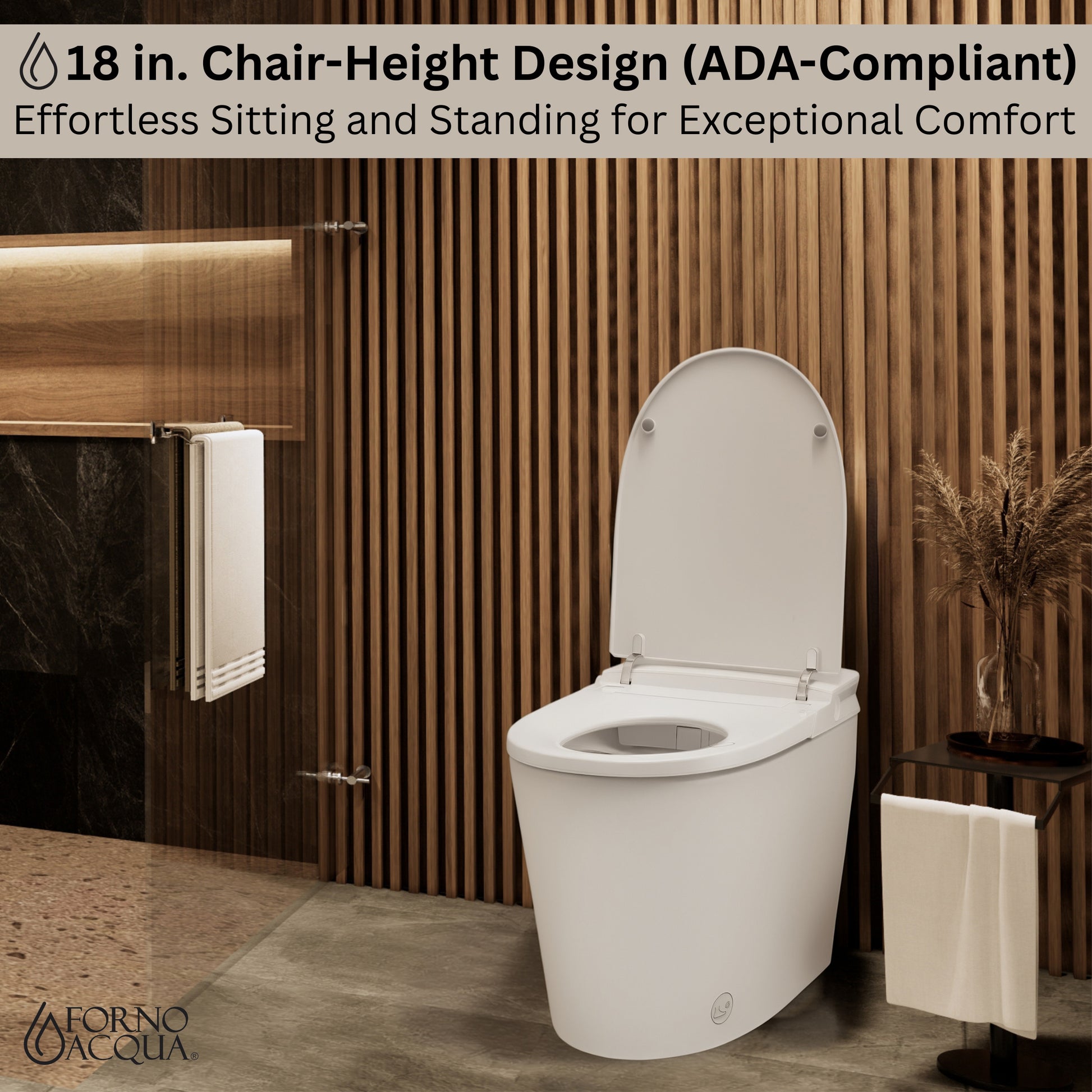 FORNO ACQUA Luxurious Smart Toilet. Includes Auto Flush, Powerful Flush, sleek tankless design Ideal for Powder Rooms.
