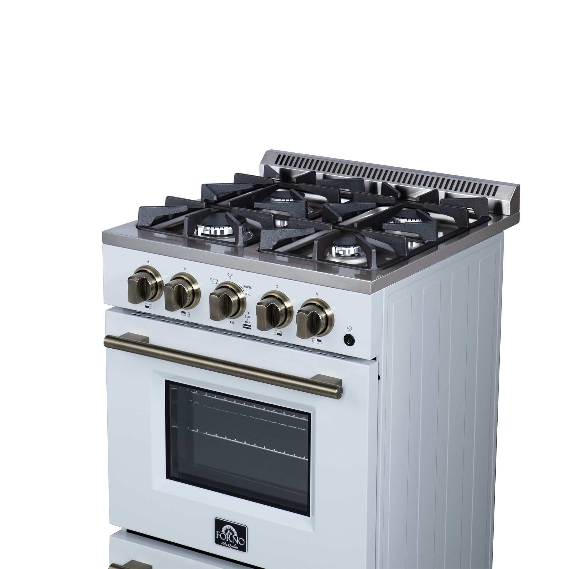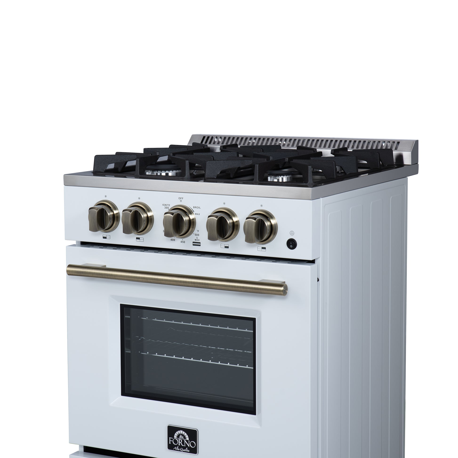 Forno Breno 24 Inch Freestanding Gas Range in White with Antique Brass, Compact Design
