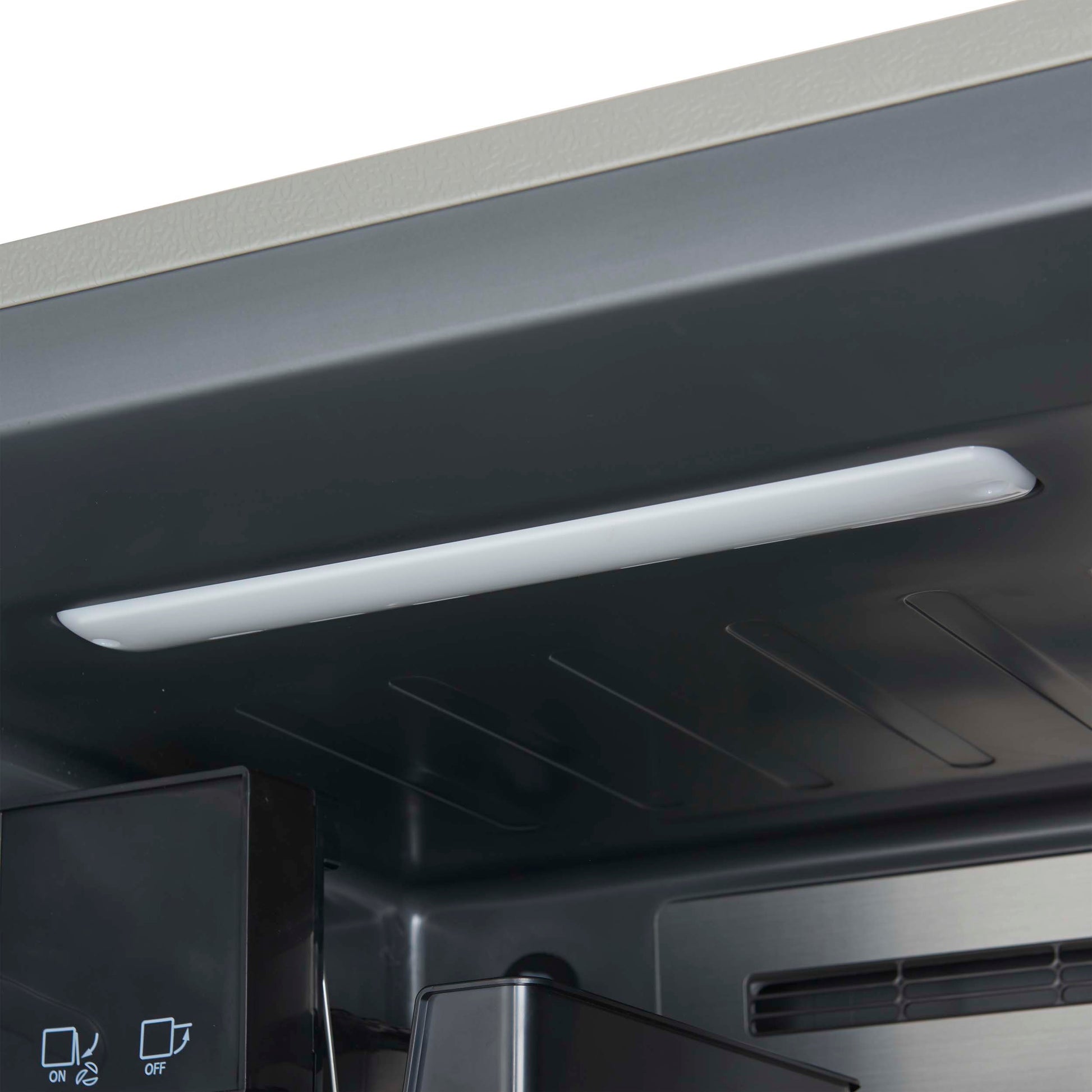 * Automatic Filtered Ice Maker: Crescent-shaped ice cubes made from filtered water, automatically produced and stored inside the freezer.