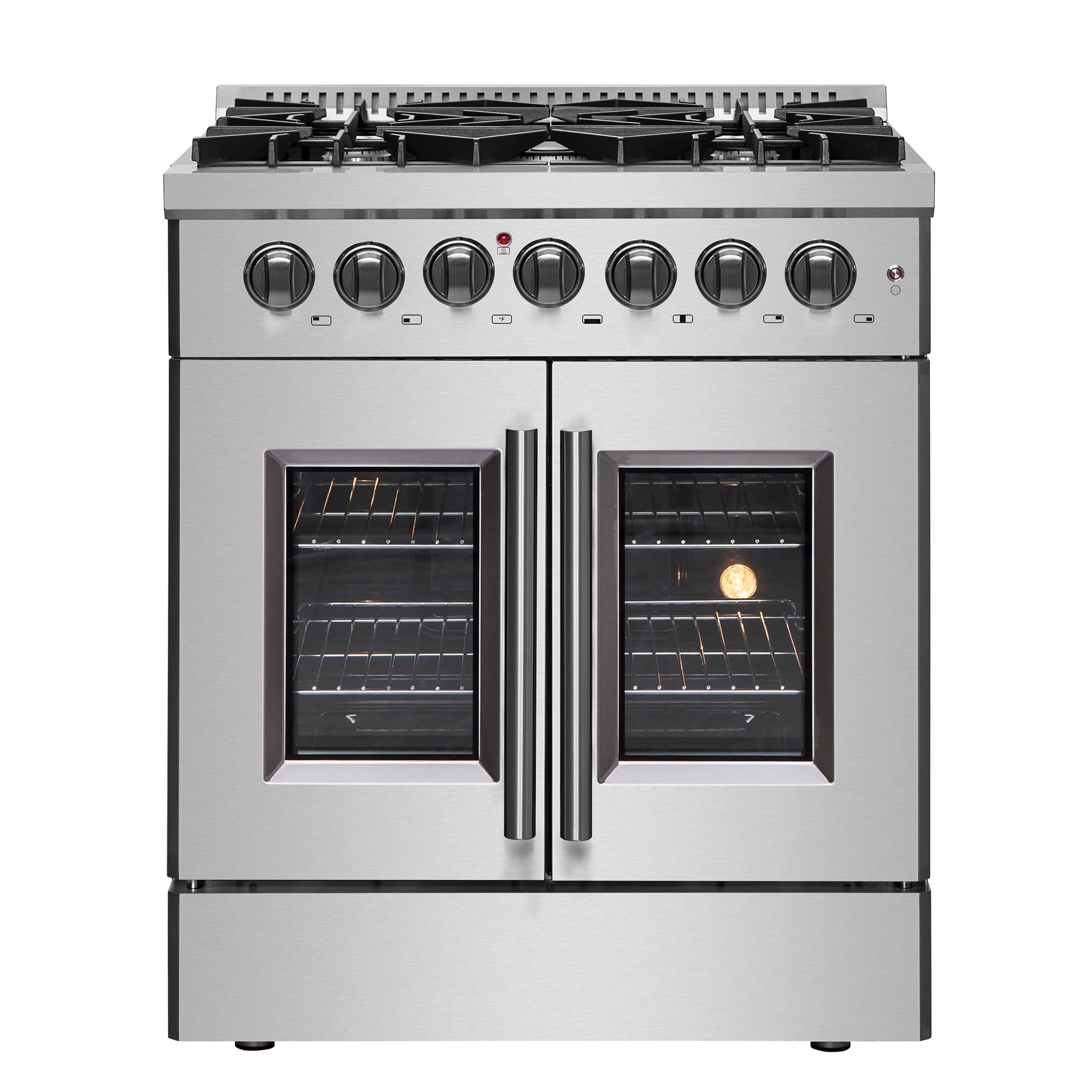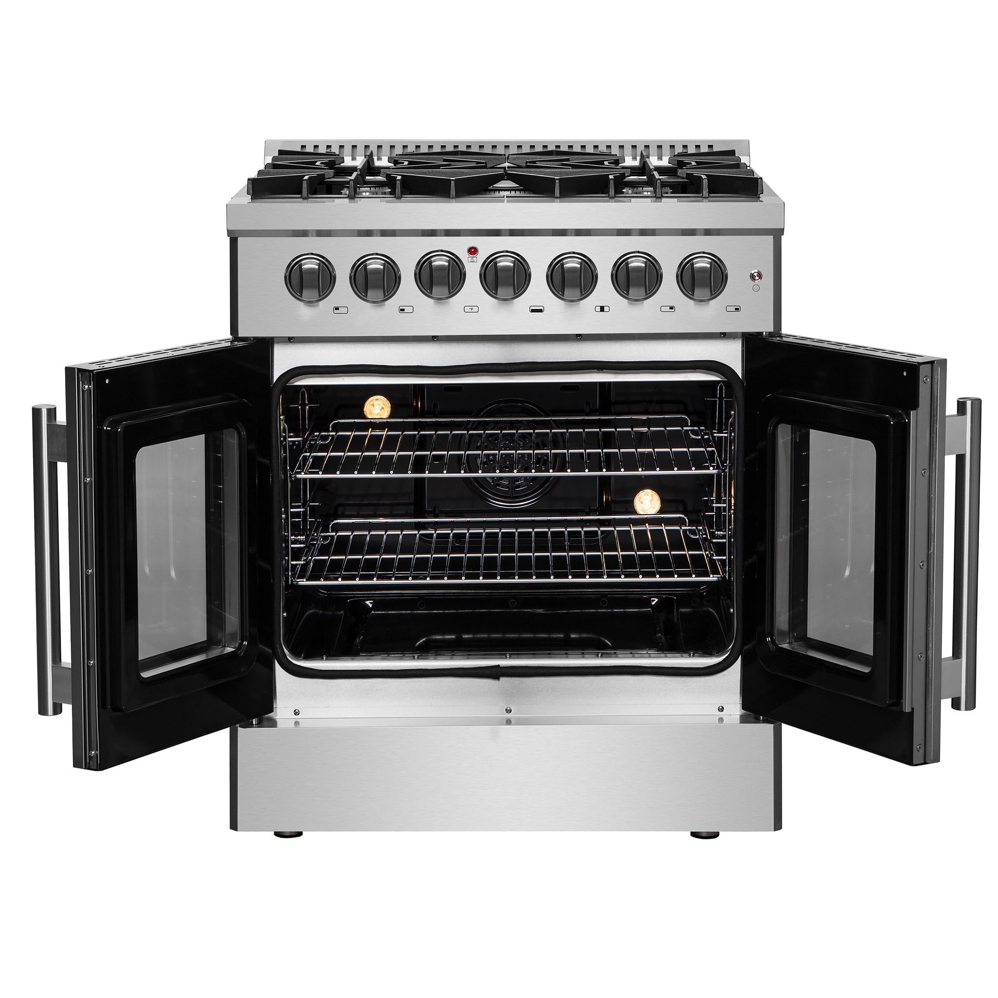 Forno Galiano 30-inch French Door Dual Fuel Range All Stainless Steel, 5 Sealed Burners 68,000 BTU, 4.32 cu.ft. True Convection Oven