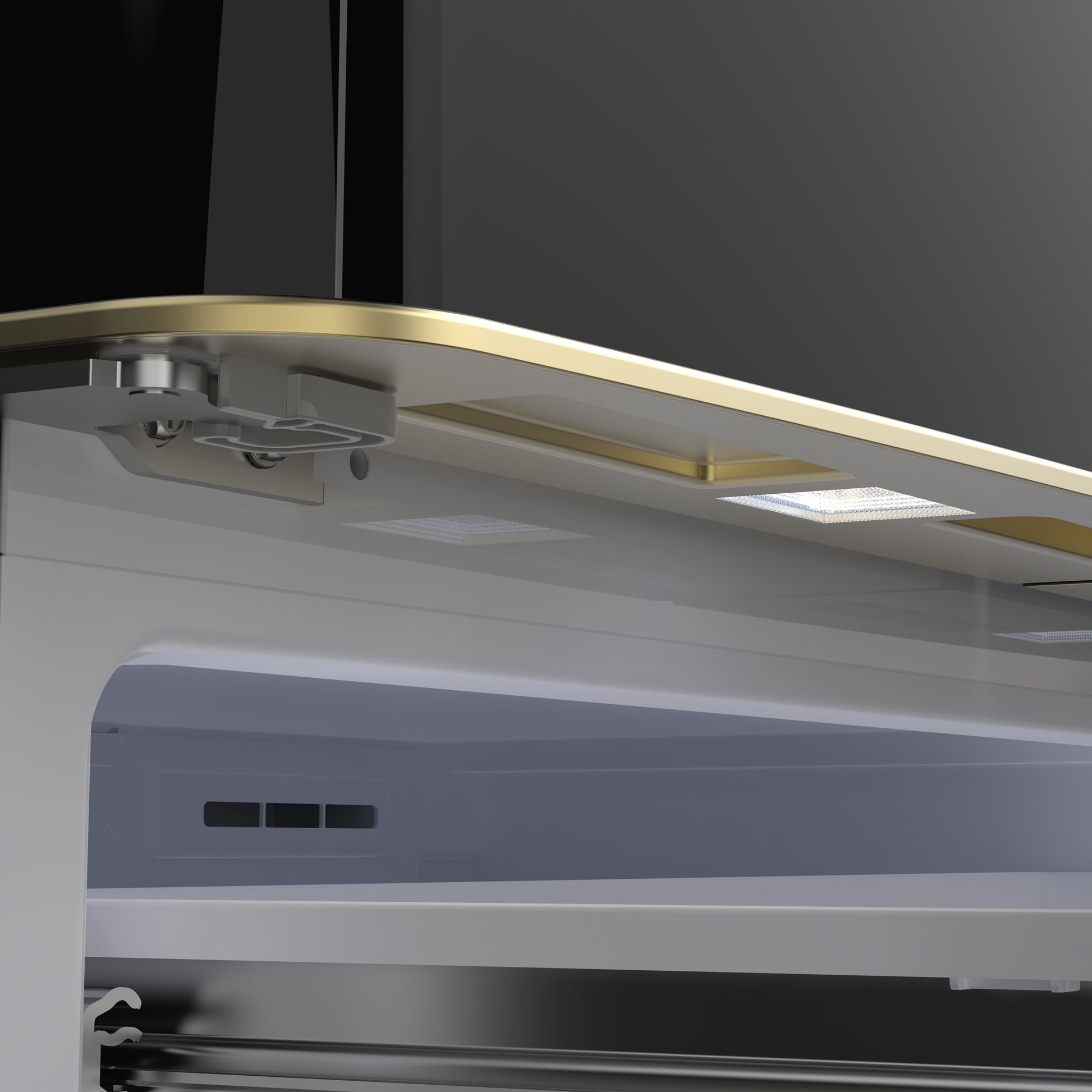 * Sleek black-finished doors with antique brass handles add a distinctive, stylish touch.