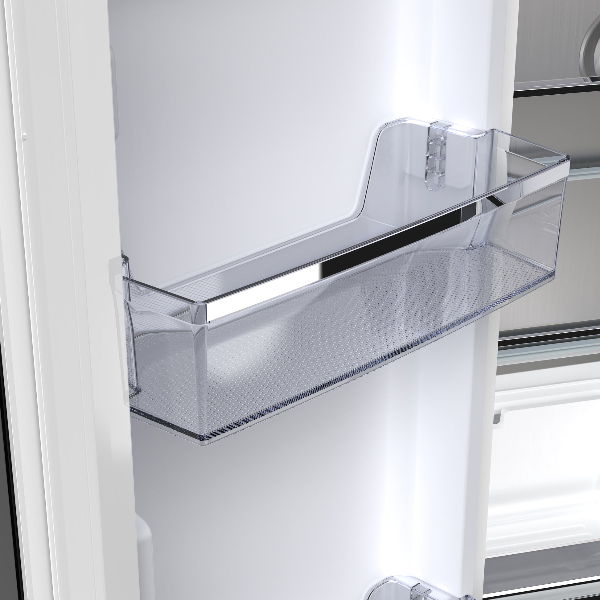 * Fresh food compartment offers 3 glass shelves, 4 spacious door bins, and 2 crispers for organized, flexible storage.