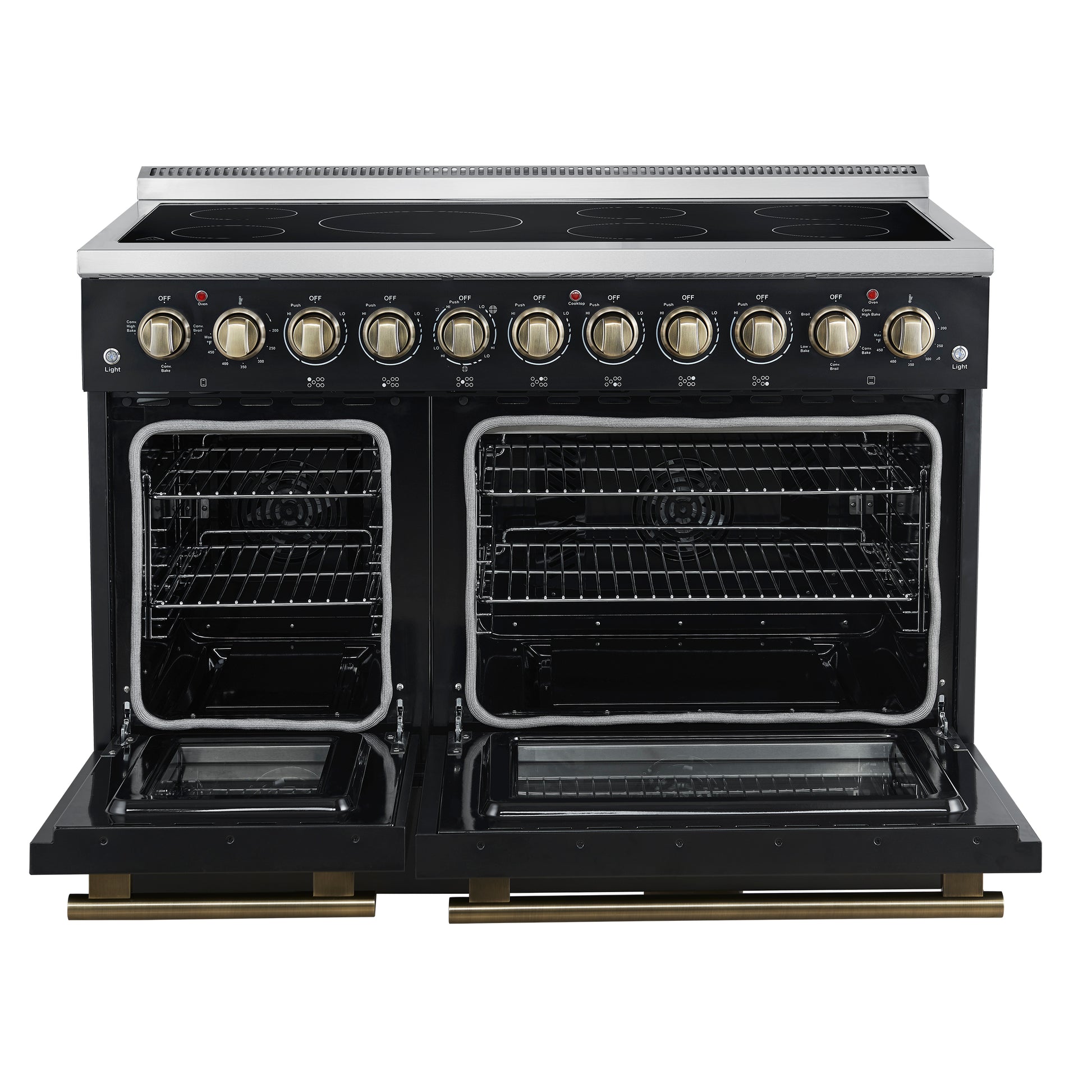 Forno Paolo 48 Inch Freestanding Electric Range in Black with Antique Brass, 6.7 cu.ft, True Convection Oven, Energy Efficient