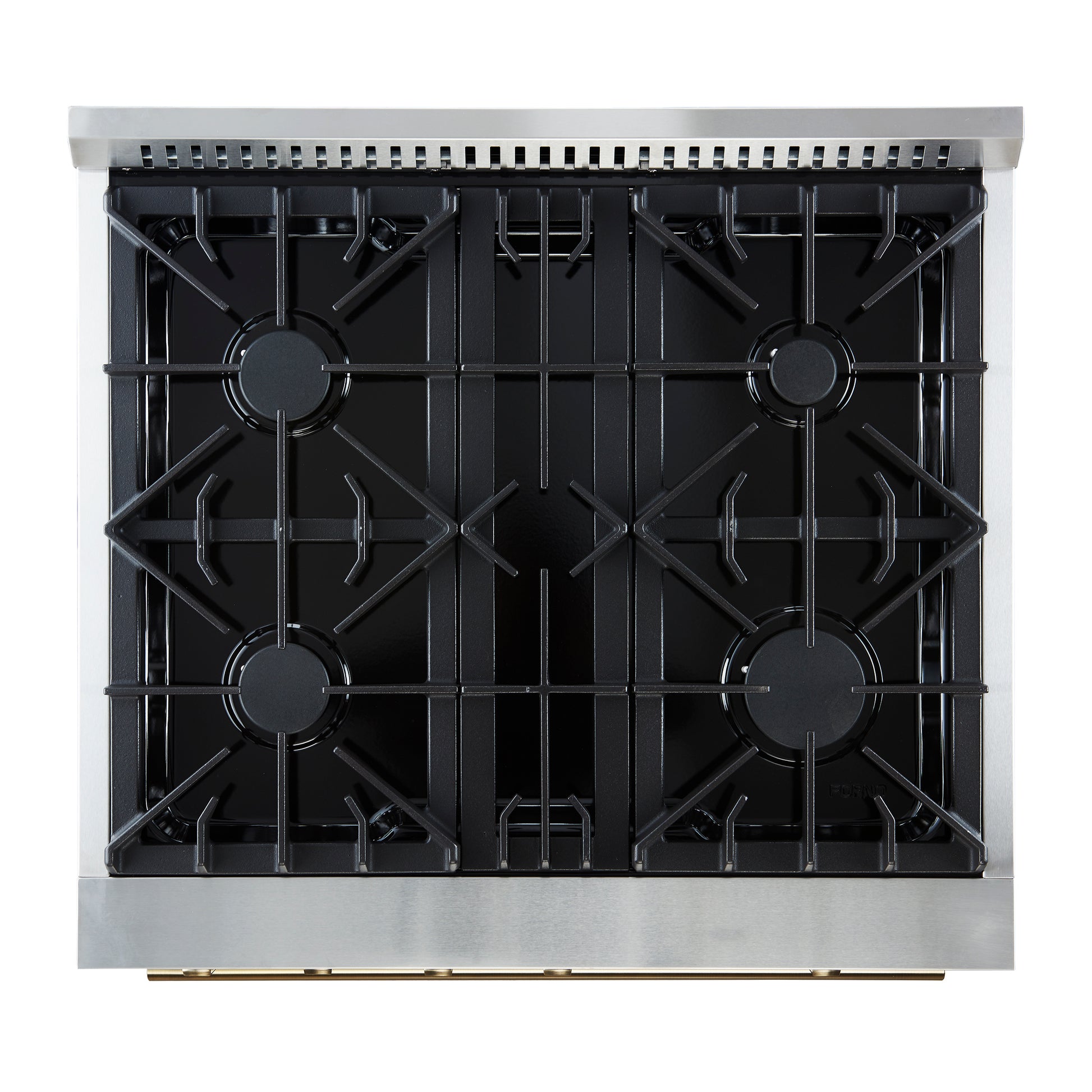 Marco 30-inch Gas Range White & Antique Brass Design, 4 Burners 37,000 BTU, 4.32 cu.ft. Convection Oven